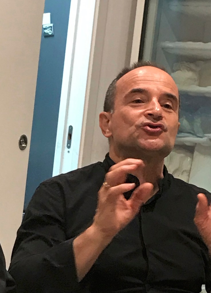 If Giovanni Garbugli was at his café when you arrived, he might be the waiter who brought out your order of coffee, pastries, and salami, with a light in his eyes and Italian bow shape to his smile. Or if Giovanni had arranged the long table and menu for students or faculty in the side alley, he would come out as wine sommelier and teacher of Italian cuisine and culture, his hands moving like a fluid art form.