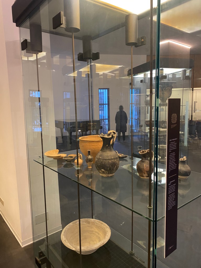 Most of the artifacts we saw came from sunken ships around the Mediterranean. As the slightly poetic English translation beside the glass cases put it, more ships rest underwater than sail on the surface. For centuries, classical Greek and Roman culture flourished on these waters, trading in oil and wine. And ideas, as another interpretative sign put it.