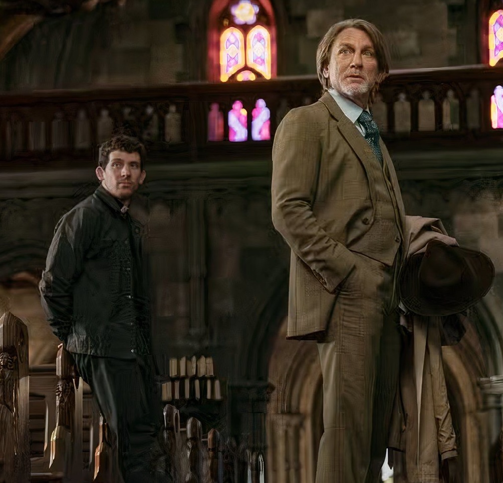 The Daniel Craig detective, Benoit Blanc, is “a proud heretic. . .I kneel at the altar of the rational.” He wants no storytelling, mythologizing or miracles to help him solve the murder of a grotesque power-mad Catholic monsignor. The young Father Jud, who was assigned to the parish church to help save it, first encounters Blanc when he barges into the sick church after the murder.