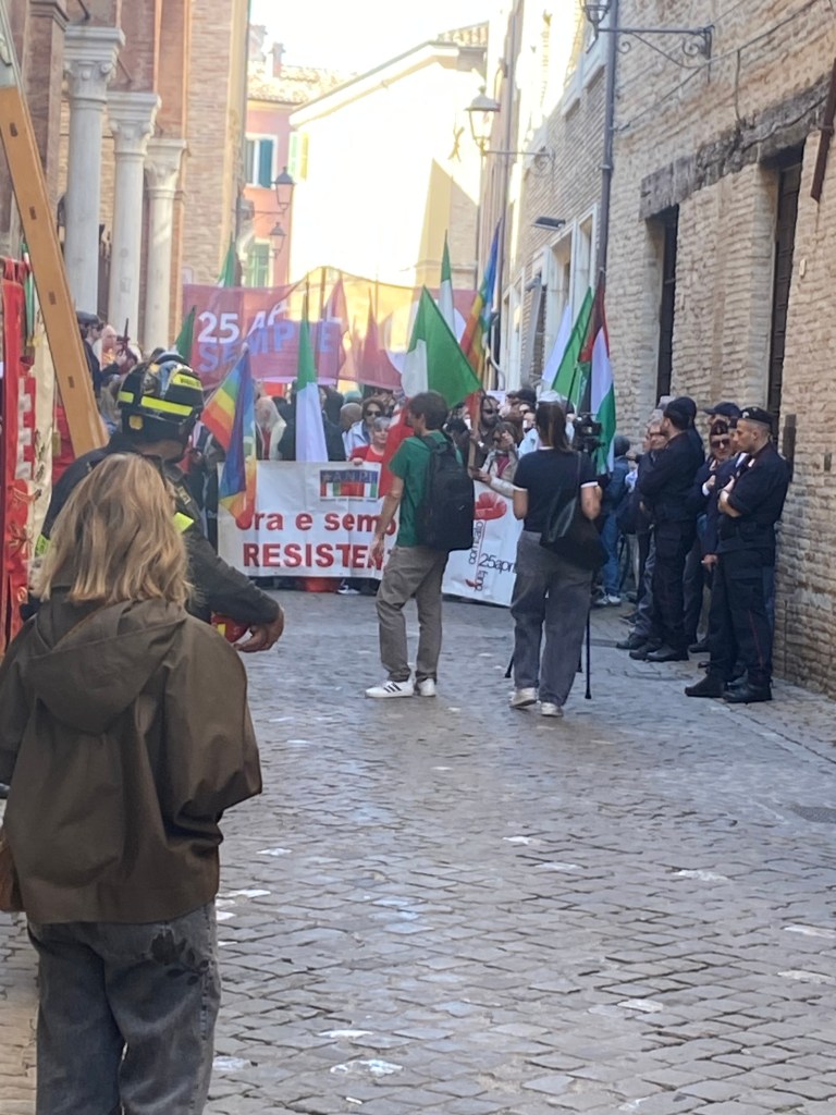 I talked to a couple of the Resistance protesters carrying Palestinian flags. Their “resistance” was not against anything in Fano, and barely against Italy. Mainly, they did not trust Prime Minister Giorgia Meloni’s turnaround over an agreement on armament support for Israel. The young woman told me the Rome-based defense contractor Leonardo, partly owned by the Italian government, continue to supply arms used by Israel against civilians.