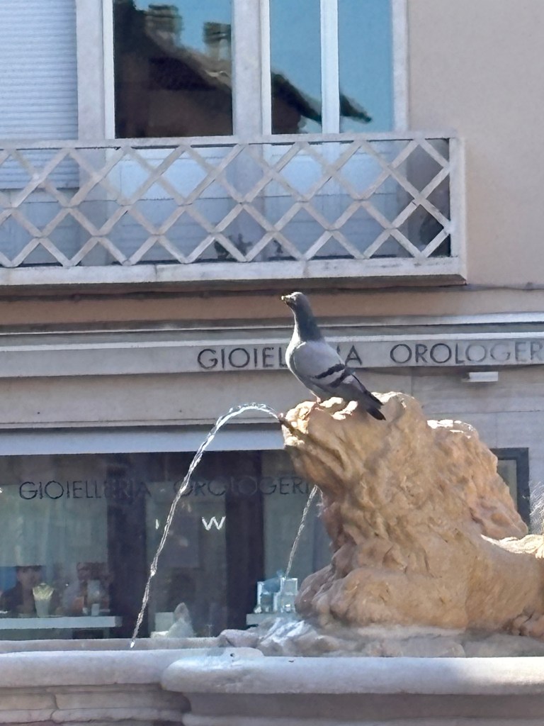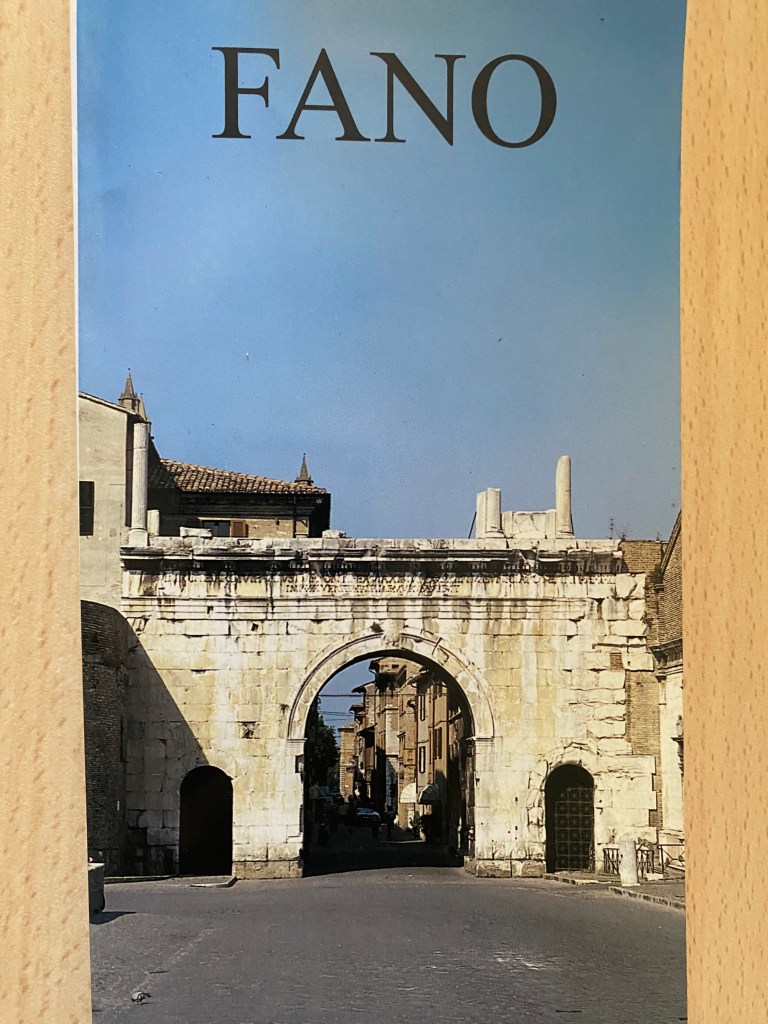 We’re getting oriented. The problem is that Fano was a Roman town, with an “Arc of Augustus” Caesar still dominating our street and a newly identified basilica by the “father of architecture,” Vitruvius, a contemporary of Augustus Caesar. Fano is also a medieval town, with cobblestone streets, piazzas and a wall built catawampus to the Roman plan. And it is a beach town and seafood port, on the other side of the train tracks, as Italy goes diagonally down the Adriatic Sea, a boot drawn back to kick Sicily down the Mediterranean.